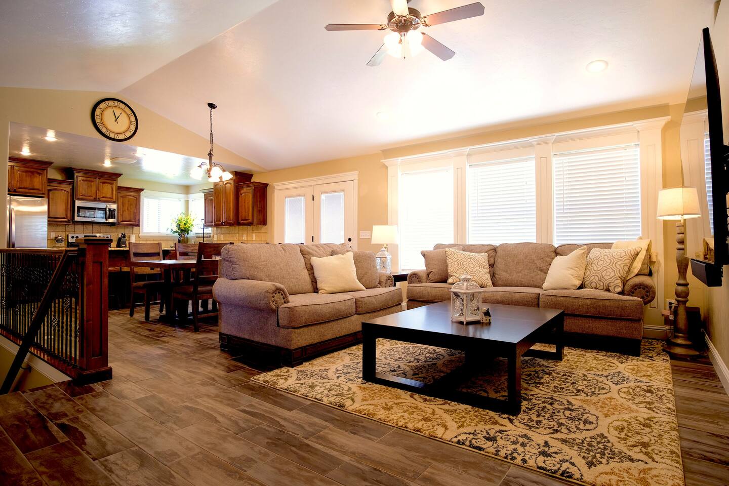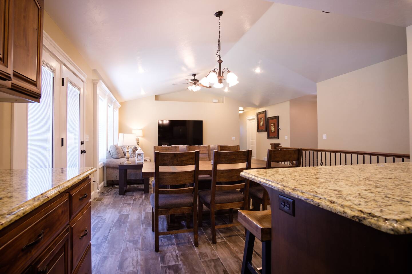 ββ LIVING ROOMS ββ β Two inviting living areas with plush seating β 75β 4K Smart TVs in both spaces πΊ β Perfect for movie nights, game days, or family time ββ KITCHEN + DINING ββ β Fully stocked kitchen with modern appliances β Refrigerator, Freezer & Ice Maker β Dishwasher, Oven, Stove & Microwave β Coffee Maker + Toaster β β Cookware, Utensils & Spices β Dining table + breakfast bar seating for casual meals ββ BEDROOMS + BATHROOMS ββ β 6 comfortable bedrooms & 3 full bathrooms β Fresh linens, towels, shampoo, conditioner & soap provided β Bathrooms include both shower and tub options πΏπ β Room-darkening shades for restful sleep π΄ ββ OUTDOOR SPACE ββ β Large private backyard with open play space β BBQ grill for outdoor cooking π β Perfect for family games, gatherings, or stargazing β¨ ββ FAMILY-FRIENDLY EXTRAS ββ β Pack βn Play + High Chair for Little Ones πΆ β Board Games & Family Activities π― β Multiple Smart TVs & entertainment options πΊ ββ LOCAL ATTRACTIONS ββ β 10 Minutes: Idaho Falls Zoo, Snake River Greenbelt, Japanese Friendship Garden, LDS Temple, Idaho Falls Museum, Airport βοΈ β 15β40 Minutes: Yellowstone Bear World, Heise Hot Springs, Rigby Lake, Rexburg Rapids, Blacktail Lake β 1β2 Hours: Yellowstone National Park, Jackson Hole, Palisades Lake, Lava Hot Springs, Island Park Enjoy local hot springs, Yellowstone Bear World, or catch a Chukars baseball game at Melaleuca field. You can take a stroll along the Idaho Falls green belt, or meander through the Japanese Gardens. Visit the Idaho Falls Temple Visitors Center or tube the river at Lava Hot Springs. Rent a kayak sunrise/sunset tour (ask for details) or, if its winter, ski at Grand Targhee Resort. Perfectly located for both local fun and day trips to world-famous destinations.