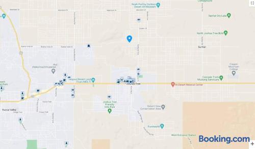 Pros - Short drive to downtown Joshua Tree - 4-minute drive to Dollar General - 4-minute drive to the Joshua Tree Saloon - 10-minute drive to Walmart Supercenter - Beautiful views of the surrounding mountain ranges - Large lot to enjoy Cons - Still in a residential area, so guests must keep the noise down after hours - Our neighbors have dogs, so it's not uncommon to hear them barking